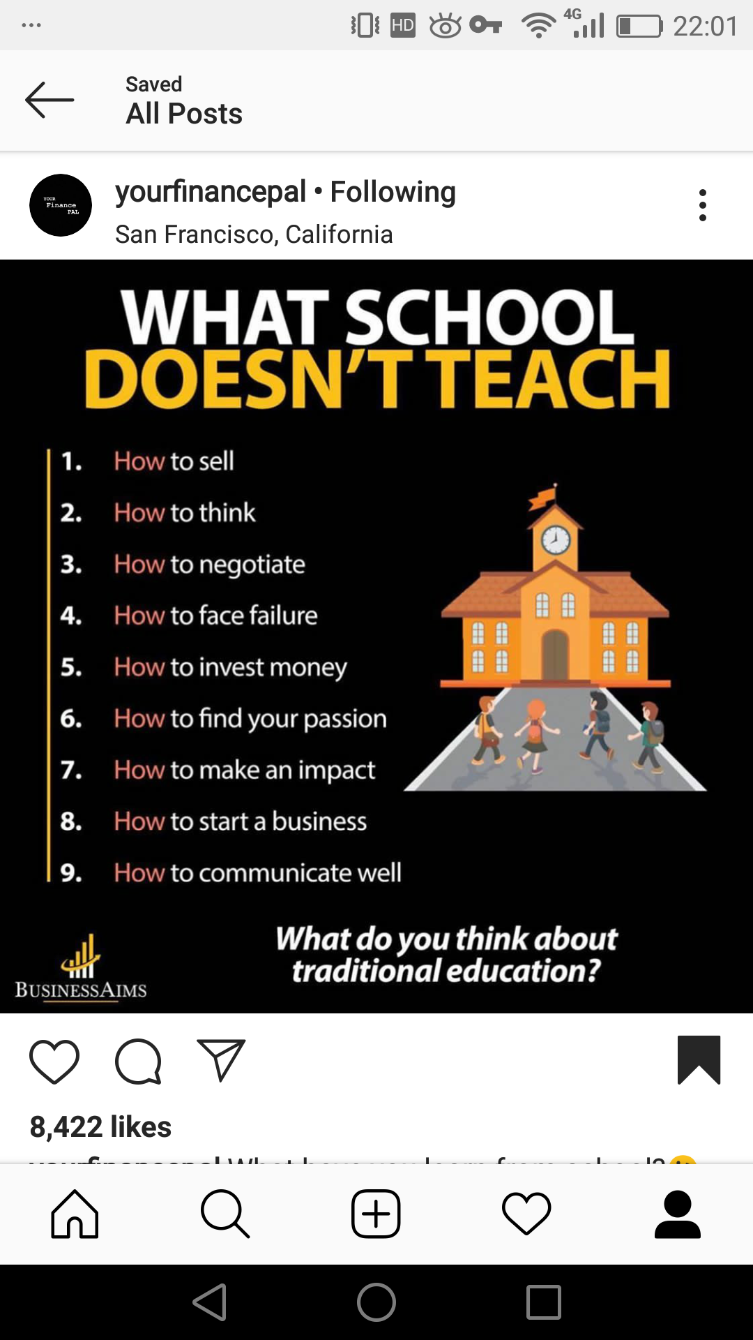 学校应该要教会你怎样卖东西,怎样思考,怎样去谈判,怎样面对失败,怎样投资,怎样找到你的热爱,怎样创造影响,怎样创业,怎样交流。